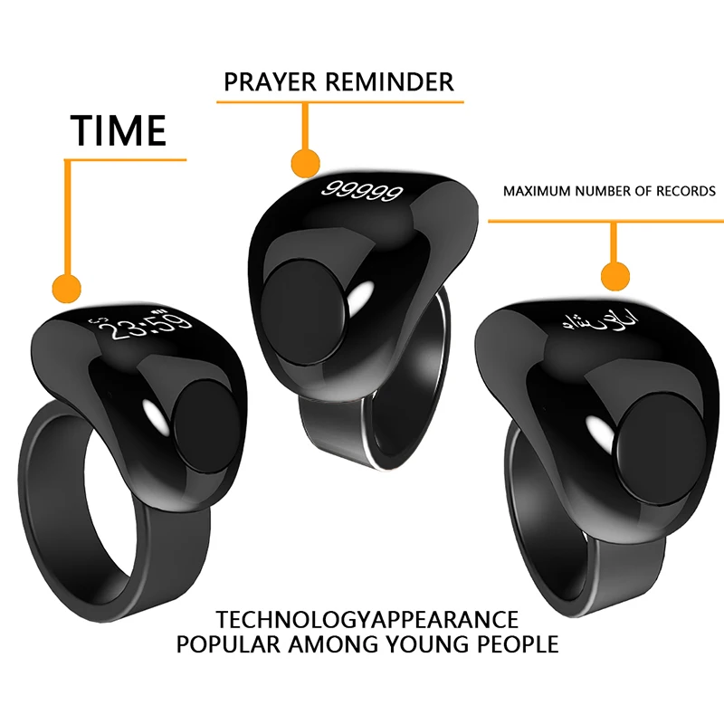 Smart Praise Zikr Ring For Muslims Tasbih OLED Digital Counter Tasbeeh Prayer Time Vibration Reminder Waterproof