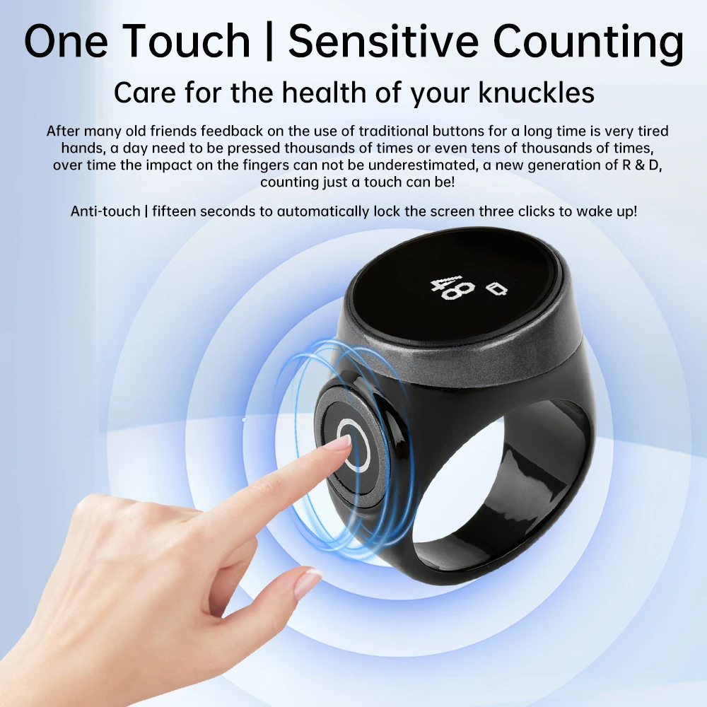 Smart Tasbih Tally Counter Finger Ring Tally Counters Digital Muslims Tasbeeh Zikr Prayer Time Vibration Reminder Waterproof